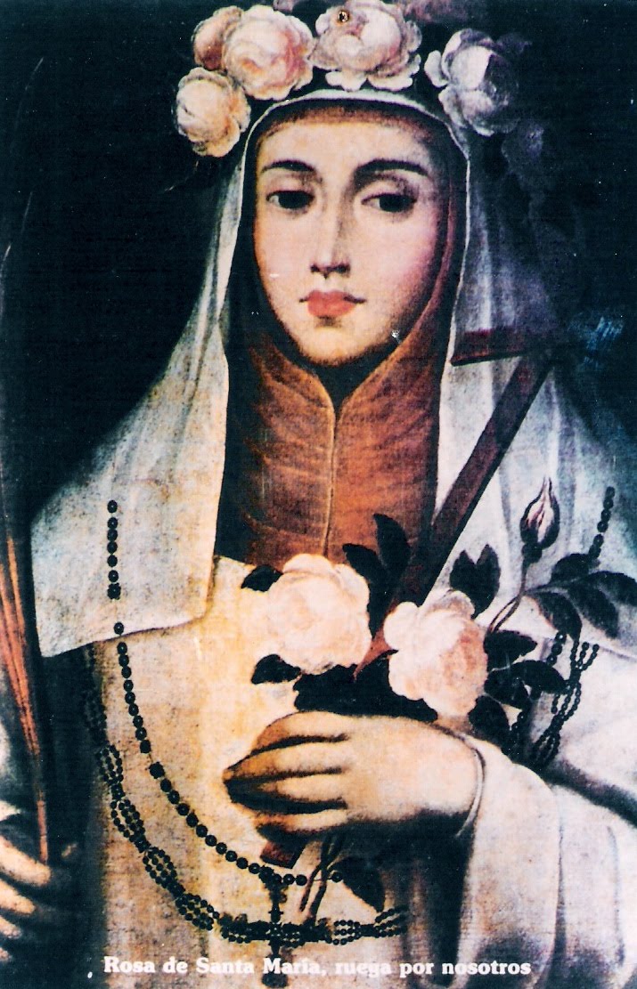 Isabella Flores, known as Rose, was born in Lima, Peru in 1586 and died there in 1617. She made a vow of virginity at an early age and, at the age of 20, became a Dominican tertiary. She lived in a hermitage in her family\’s garden. She practiced severe penances for the salvation of sinners and for the missionary efforts of the Church in South America. In addition to this, she cared for the poor and the sick and promoted devotion to the Rosary zealously. She was part of a trio of Dominican saints in Lima at this time, the other two being St. Martin de Porres and St. Juan Macias. St. Rose of Lima, intercede for us in all our needs!