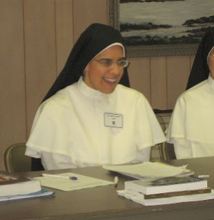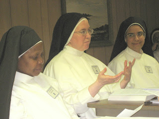 Sr. Mary of the Savior, O.P., from the Monastery of the Blessed Sacrament in Farmington Hills, MI is leading our seminar. This is a historic moment as it is the first time a Dominican nun has led a seminar for Dominican nuns at a study program in the United States!