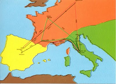 St. Dominic began his life and journeys in Spain, but traveled as far as northern Germany and into France and Italy over the course of his lifetime.