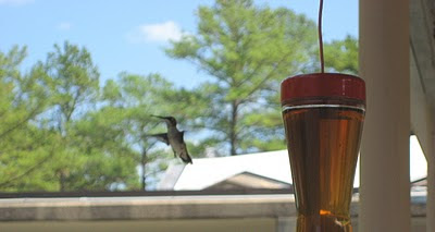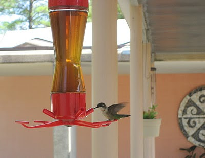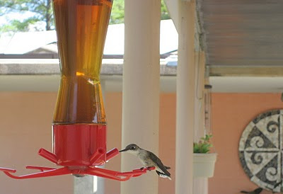 We have a hummingbird feeder on the breezeway inside our monastery cloister, and it provides much enjoyment for the sisters who love to watch the hummingbirds come to drink the nectar (and occasionally fight over who gets to drink!). And we get other visitors to the feeder as well, including orioles, wrens, wasps, and lizards! But we put it out especially for the hummingbirds of course. Since they started flying around and looking for food in April, we put the feeder out early, but now that October has come we haven\’t seen a single bird in days. Probably they have all flown south for the winter, but we hope to see them again come spring!
