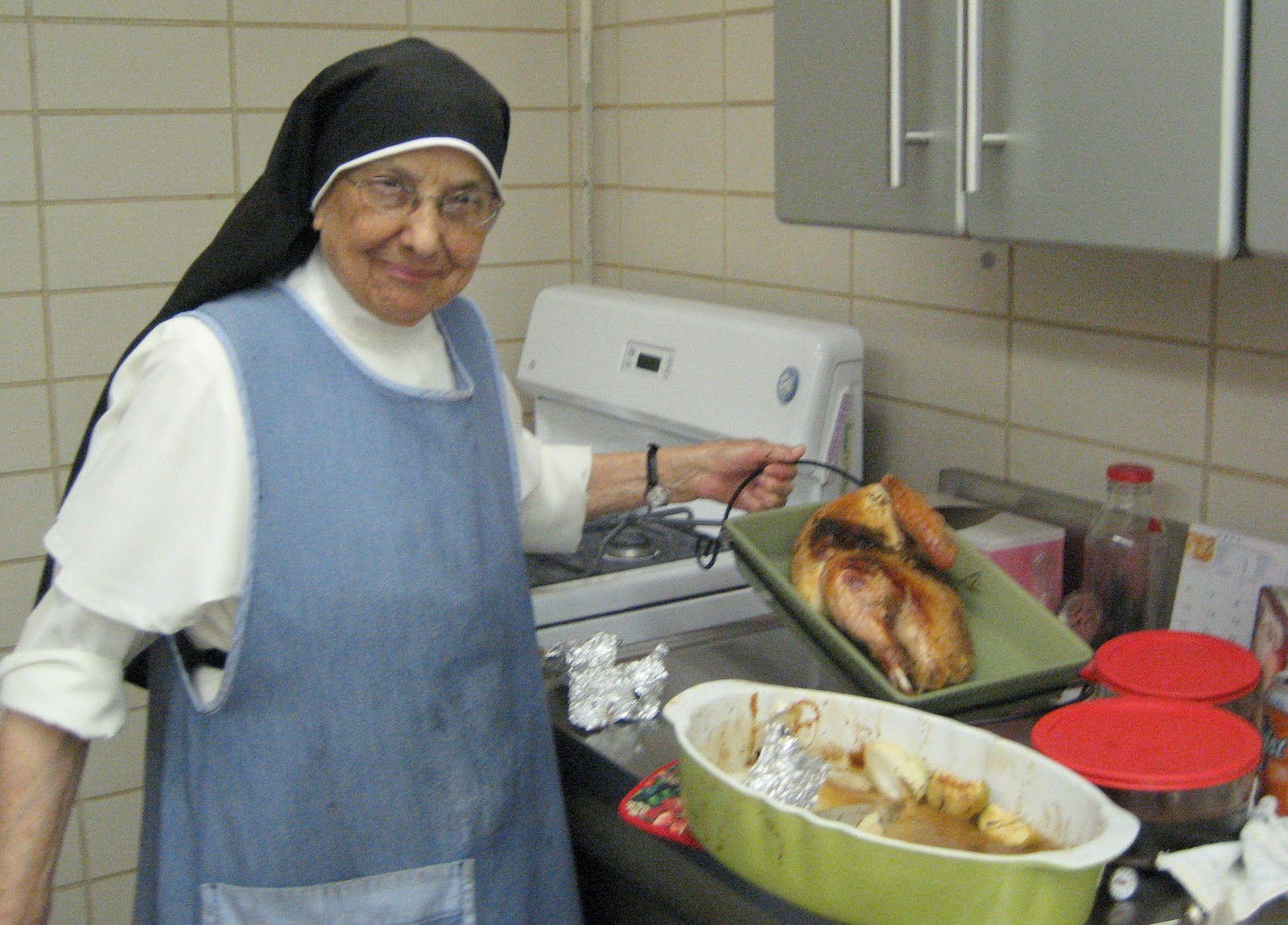 Hi Sister Veronica! Saw your picture cooking the turkey. Loved it. Miss you. Hugs-Donna