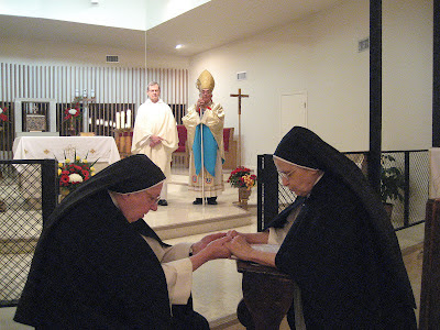 Sister Miriam renews her vows as Fr. Philibert and Bishop Corrada look on