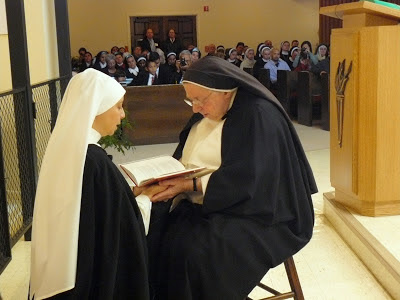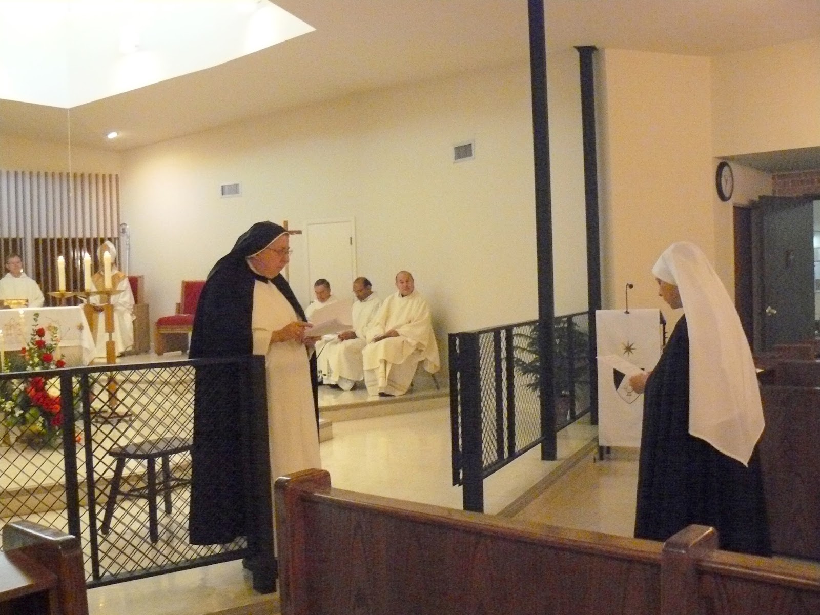 Sr. Mary John, our prioress, questions Sr. Bernadette Marie before her profession of vows