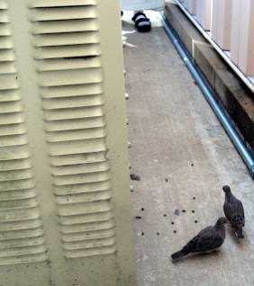 You may remember that on St. Valentine\’s Day we featured a picture of two doves who had built a nest above our carport. Well, the babies that hatched in that nest are almost grown up now! We found them enjoying a respite from the wind between the wall of our main building and our new generator!