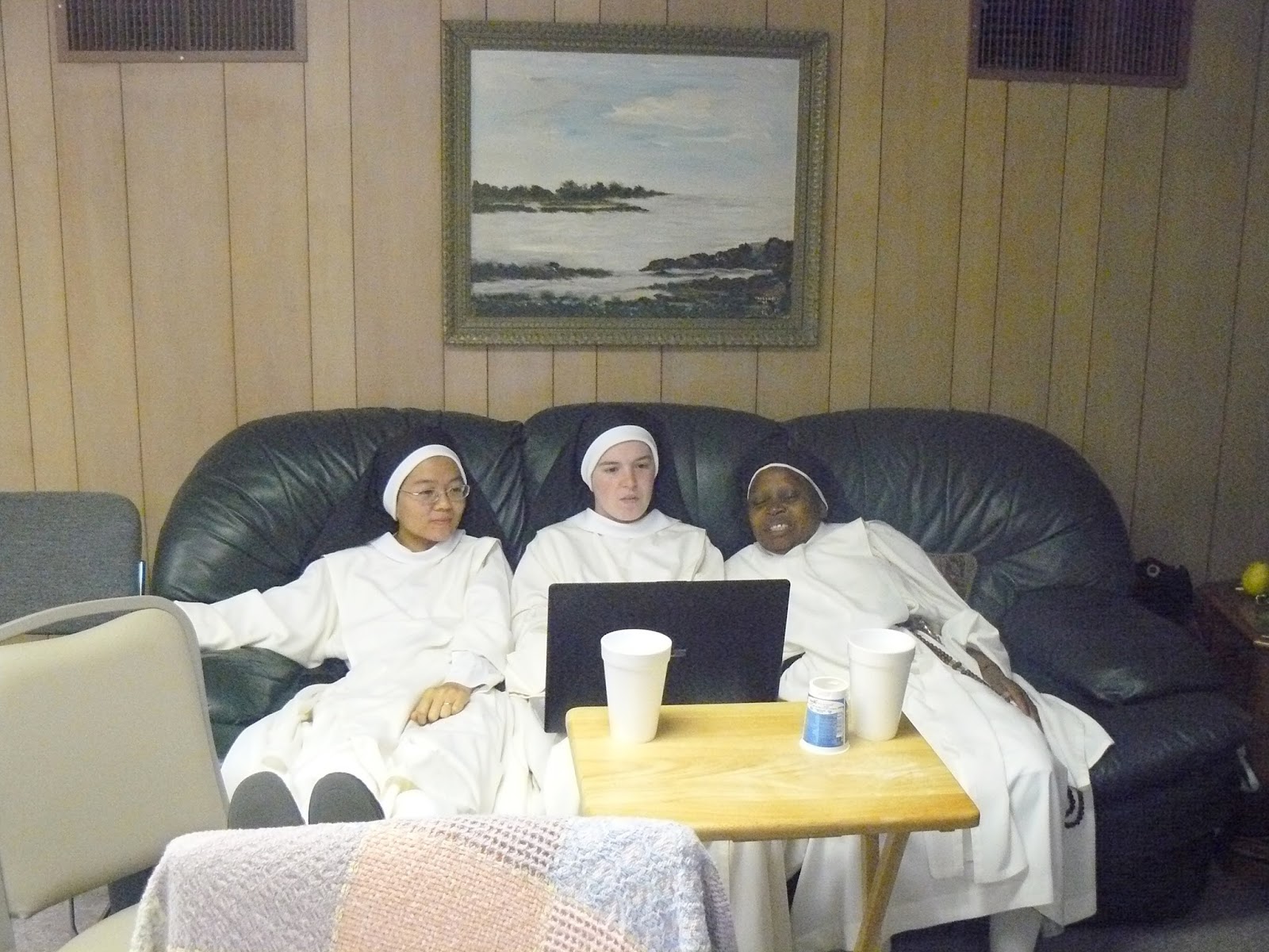 Sr. Joseph Maria (Summit), Sr. Maria Teresa (Summit) and Sr. Mary Francis (Farmington Hills) relaxing and checking out the blog!