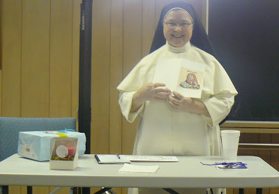 Sister received many cute gifts, including a beautiful candle from Summit (they make them at the monastery in addition to their awesome soap line), a Texas potholder, a rosary, and other good things. She is holding the card from all the students, which everyone signed. We are so grateful to Sr. Mary Jeremiah and the Association Formation Committee for making this a wonderful program these past four years! Thank you for everything!
