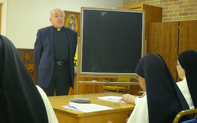 We had the privilege of some lectures (and some informal question and answer sessions) with Fr. Brian Daley, SJ this past week. These lectures were part of the Ongoing Formation program, which is coordinated by our Association of Monasteries of Dominican Nuns. Fr. Daley, a professor at Notre Dame University, gave us a series of lectures on Mary and the Fathers of the Church. In addition to being a wonderful teacher, he is also a very kind and humble man! We really enjoyed our time with him and hope he will be able to return someday.