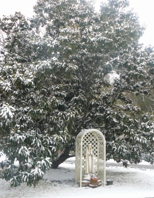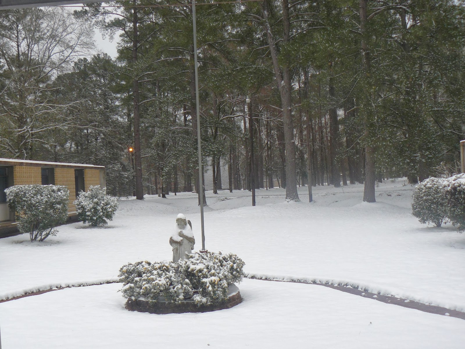 As we finished Compline last night, it started snowing…and this morning we awoke to a rare (for Lufkin) winter wonderland! We haven\’t had a snow like this since…2010?? And this was heavier snow than we had back then!