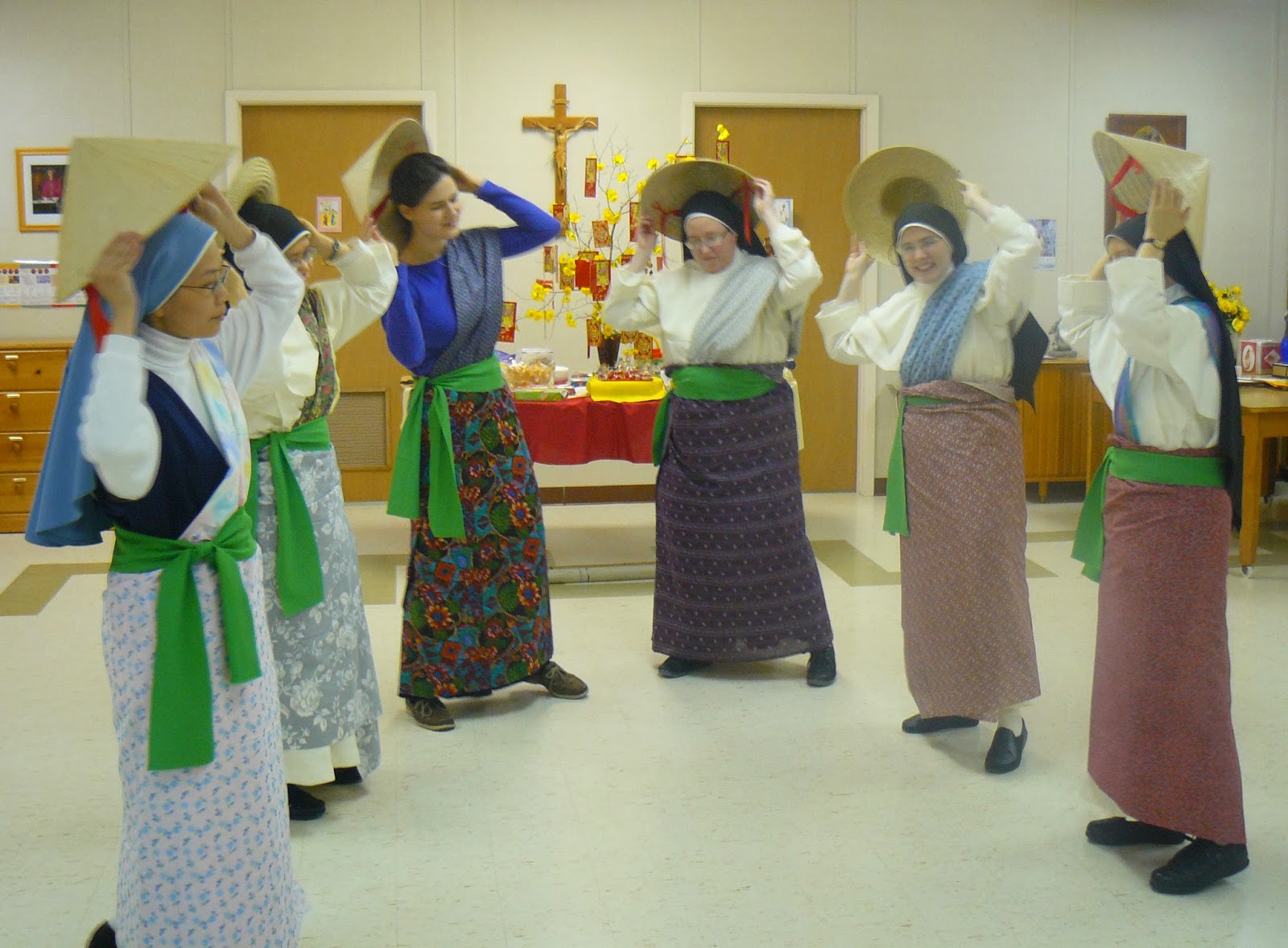 It\’s that time of year again–the Lunar New Year, or Tet as our Vietnamese sisters call it! We have come full circle this year–we began our community celebrations of Tet in 2002 (which was also the Year of the Horse) and now we are starting (so to speak) another 12-year cycle! Over the years our celebrations have varied but some things remain constant, like our traditional dance choreographed by Sr. Mary Christine. We\’ll let the pictures of the dance speak for themselves!