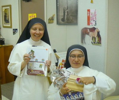 Sr. Bernadette Marie and Sr. Irma display their New Year gifts.