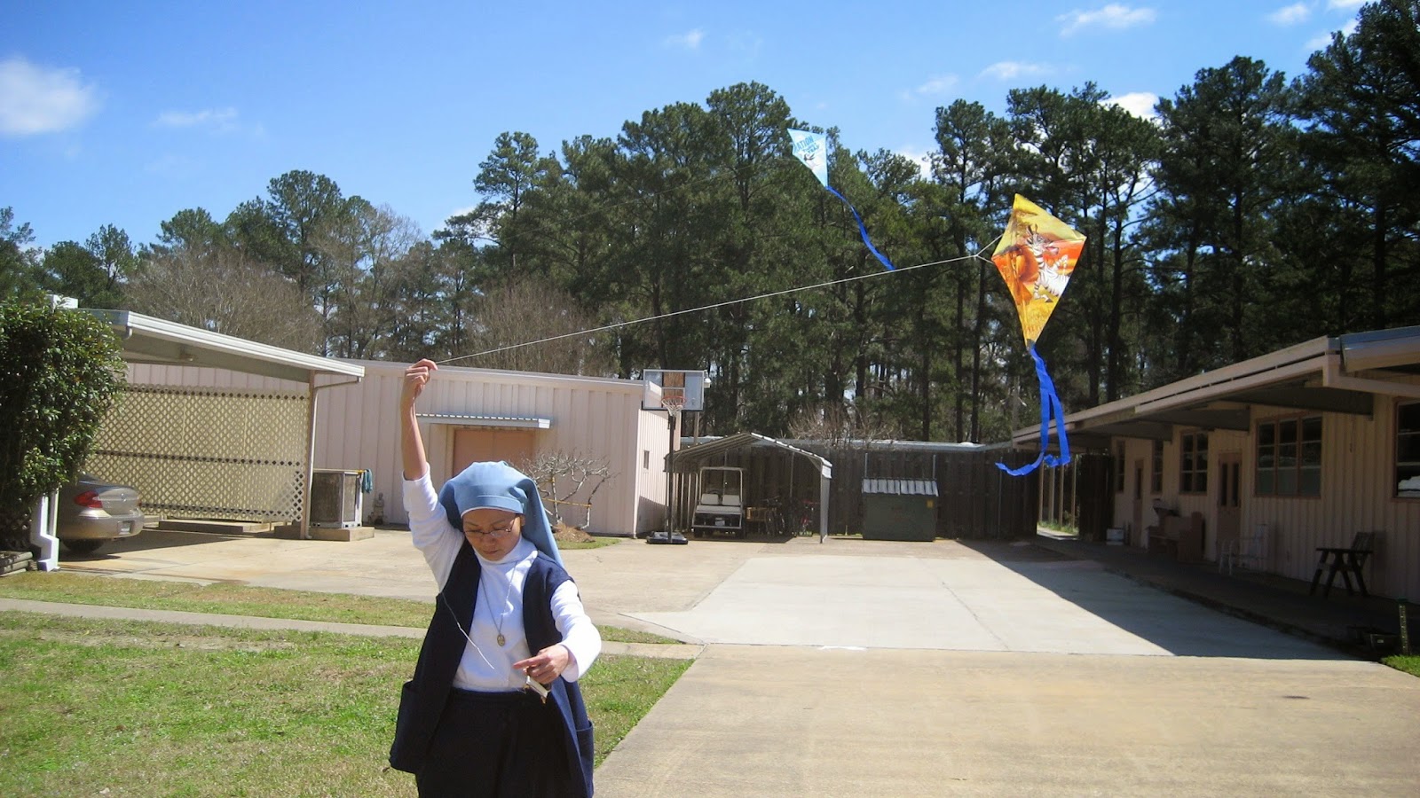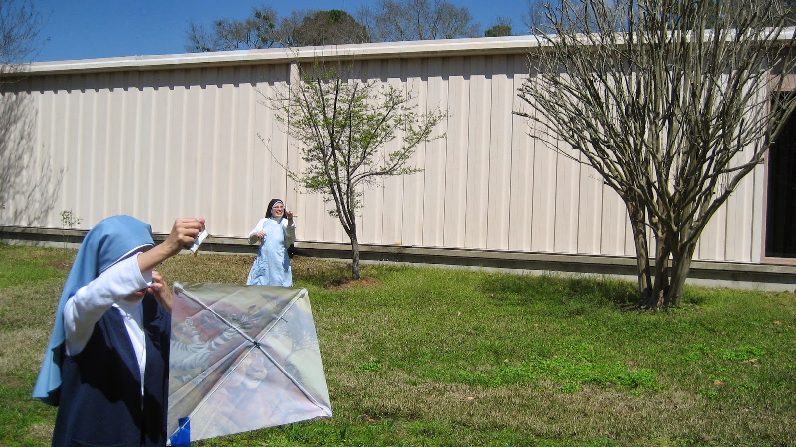 Some of the sisters took advantage of the windy, spring-like weather today to go out and fly a kite!