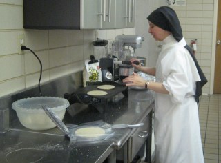 And just for fun–Sr. Bernadette Marie made us some delicious corn tortillas recently–from scratch. You can see her working here with the tortilla press in the foreground. In the interest of cultural diversity we should state that we also sometimes eat homemade egg rolls and other treats! (We\’ll try to get a picture sometime…)