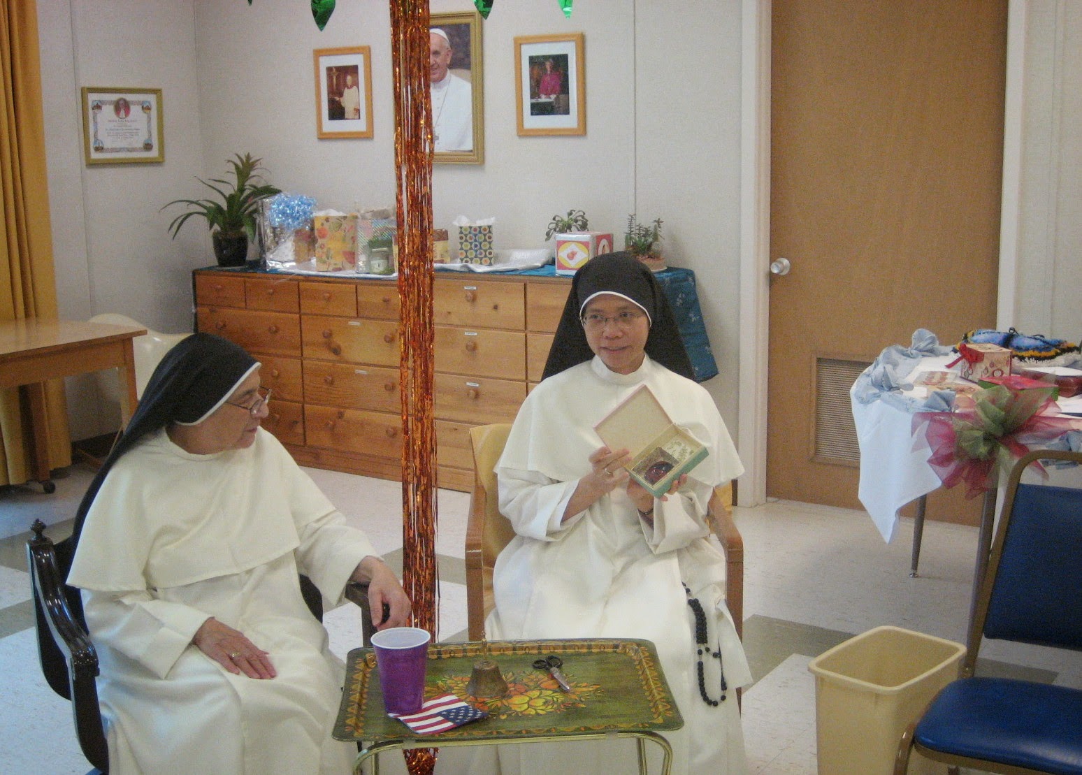In the afternoon Sr. Mary Christine opened her many jubilee gifts, both from friends and from the community.