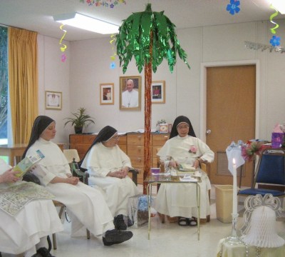 Not long ago we celebrated Sr. Mary Christine\’s silver jubilee with a community day! The entire community room was decorated like a tropical garden, and we played some fun garden-themed games in the morning.