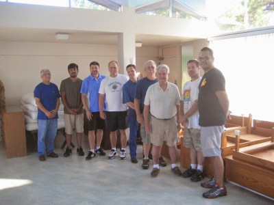 But, as we read in Ecclesiastes, \”there is an appointed time for everything, and a time for every affair under the heavens\” (3:1). We are about to replace the entire floor in the novitiate! Of course, to prepare for this great event, we had to clear out stuff. A lot of stuff! All the books in our substantial novitiate library were packed away neatly and stored; all the pictures and statues and crucifixes came down. And a lot of furniture had to be removed. Some of it we could do ourselves, some was moved by our trusty workmen, and the bulk of the furniture was moved this morning by our faithful Knights of Columbus!