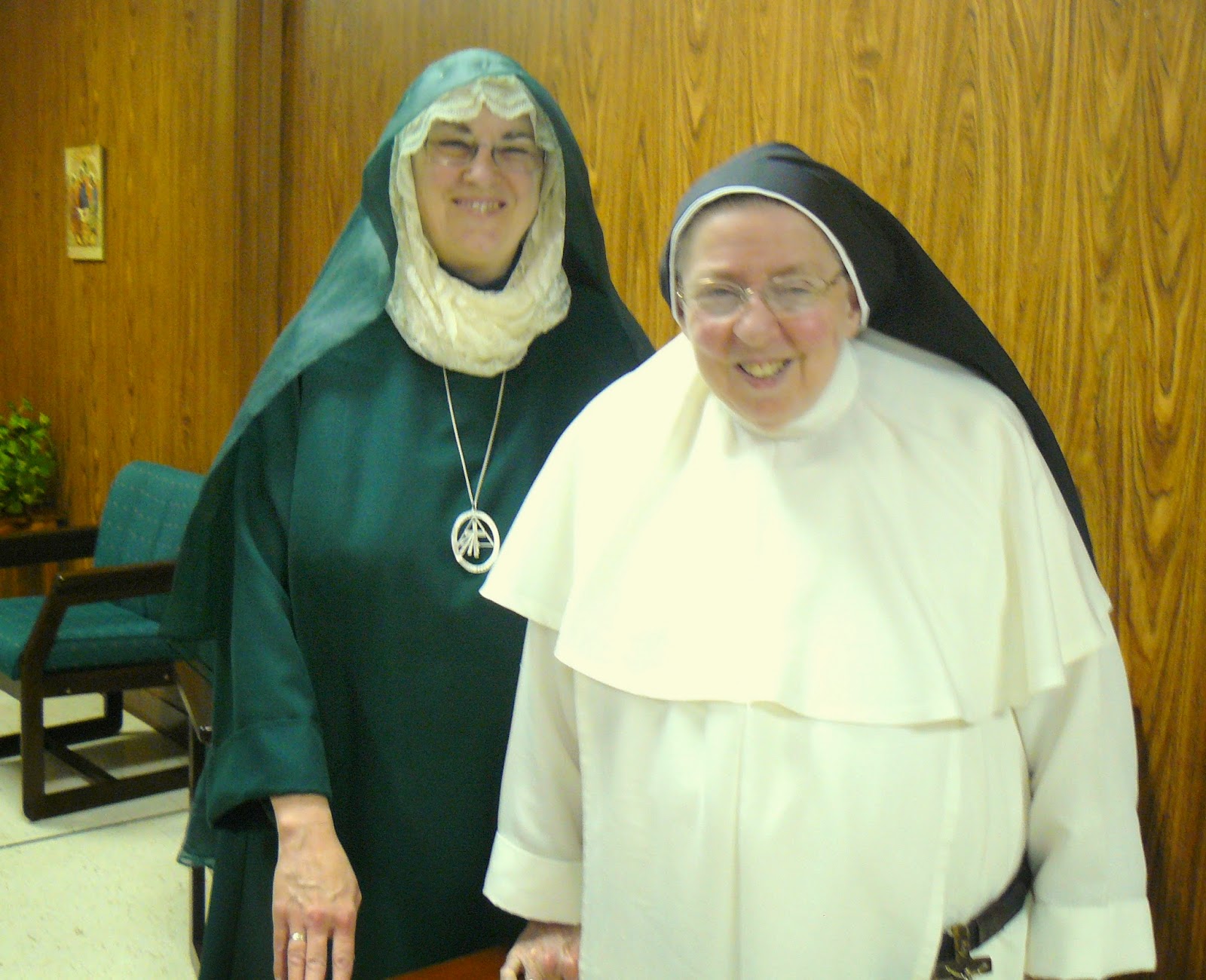 Recently we were delighted to welcome Mother Susan Catherine, superior of the new community called the Daughters of Divine Hope, to our monastery. Mother Susan Catherine officially established this community in our home diocese of Tyler, TX in 2011 and is already preparing for the first vows of her novices! Mother Susan Catherine herself just made her final vows on September 14th of this year. We have known Mother Susan Catherine for many years and are so happy that she is following God\’s call in this way. We encourage women who may be interested in active religious life to check out her community\’s website: http://www.daughtersofdivinehope.org/mainpage.html. We wish Mother Susan Catherine and her novices all the best, and we hope they will flourish in our diocese and–who knows–elsewhere, too, as God wills!