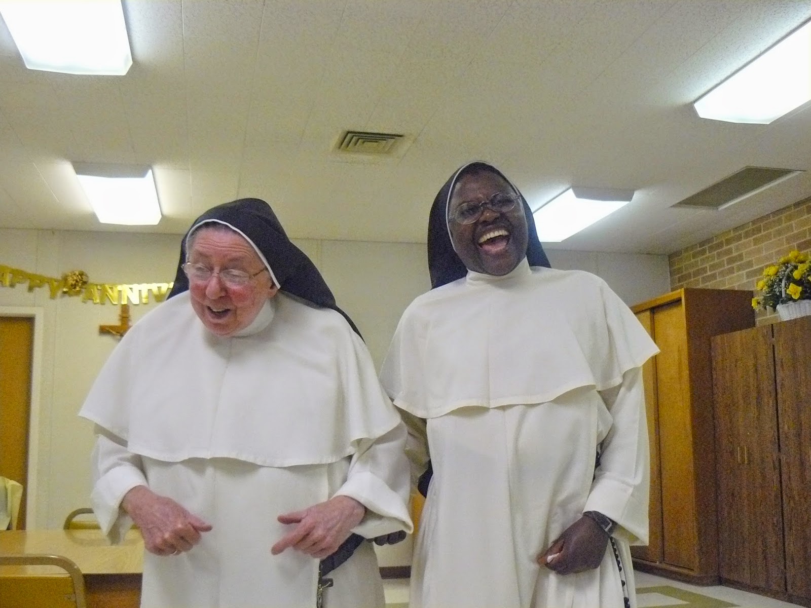 After all that celebrating, Sr. Mary John was literally doing a dance! Sr. Marie Augustine helped the festive mood by showing Sister a few African moves.