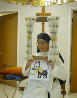 Our general theme for the day was Texas–appropriate for a jubilarian who has spent all her life here in this great state! Sr. Mary Thomas provided sound effects for a funny Texas skit using the keyboard and her own natural abilities.