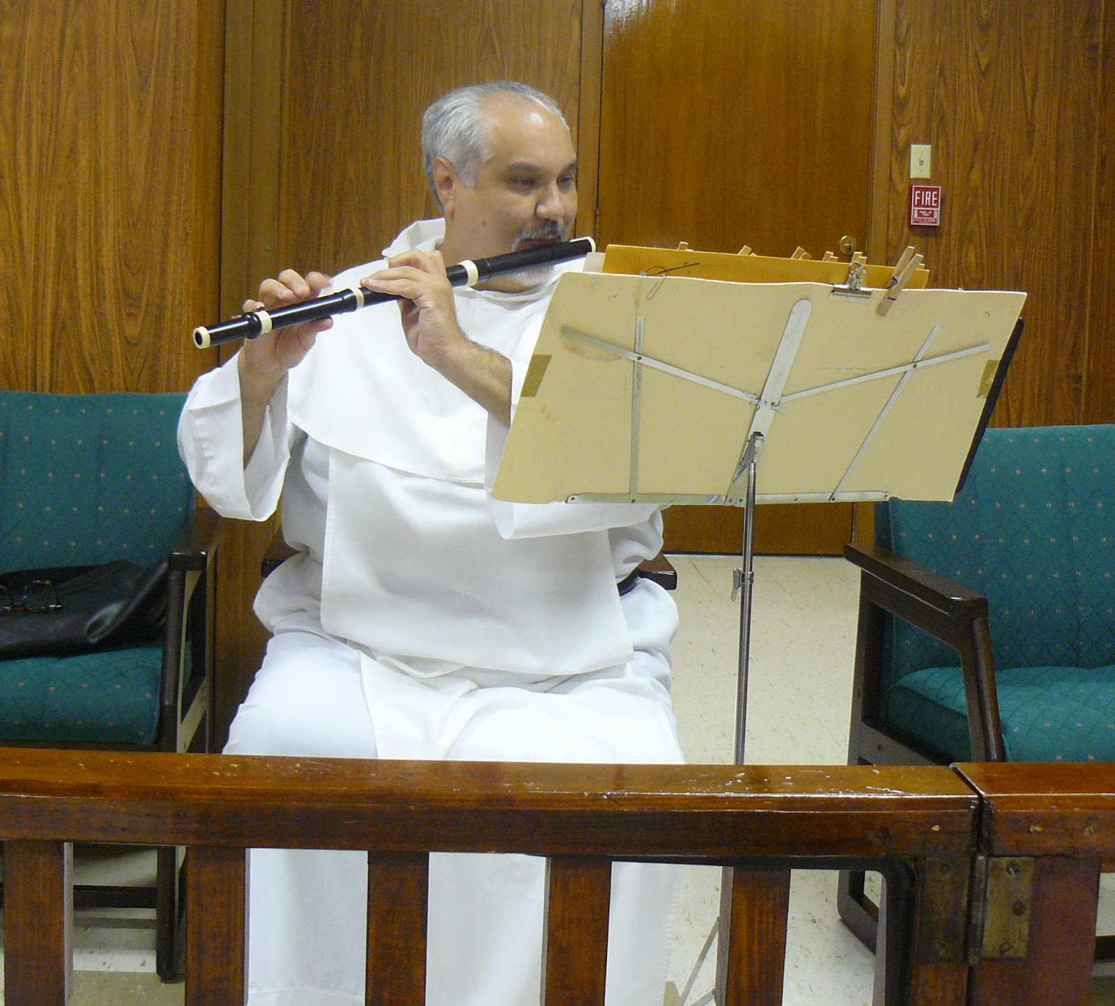 Recently we enjoyed a visit with Fr. Ramon Gonzalez, OP, of our Dominican province of St. Martin de Porres (the southern province). He came to our monastery to visit our chaplain, Fr. Marcos Ramos, OP, and graciously met with us on Friday evening. Father Ramon is an accomplished flautist and spent most of the visit entertaining us on the flute:
