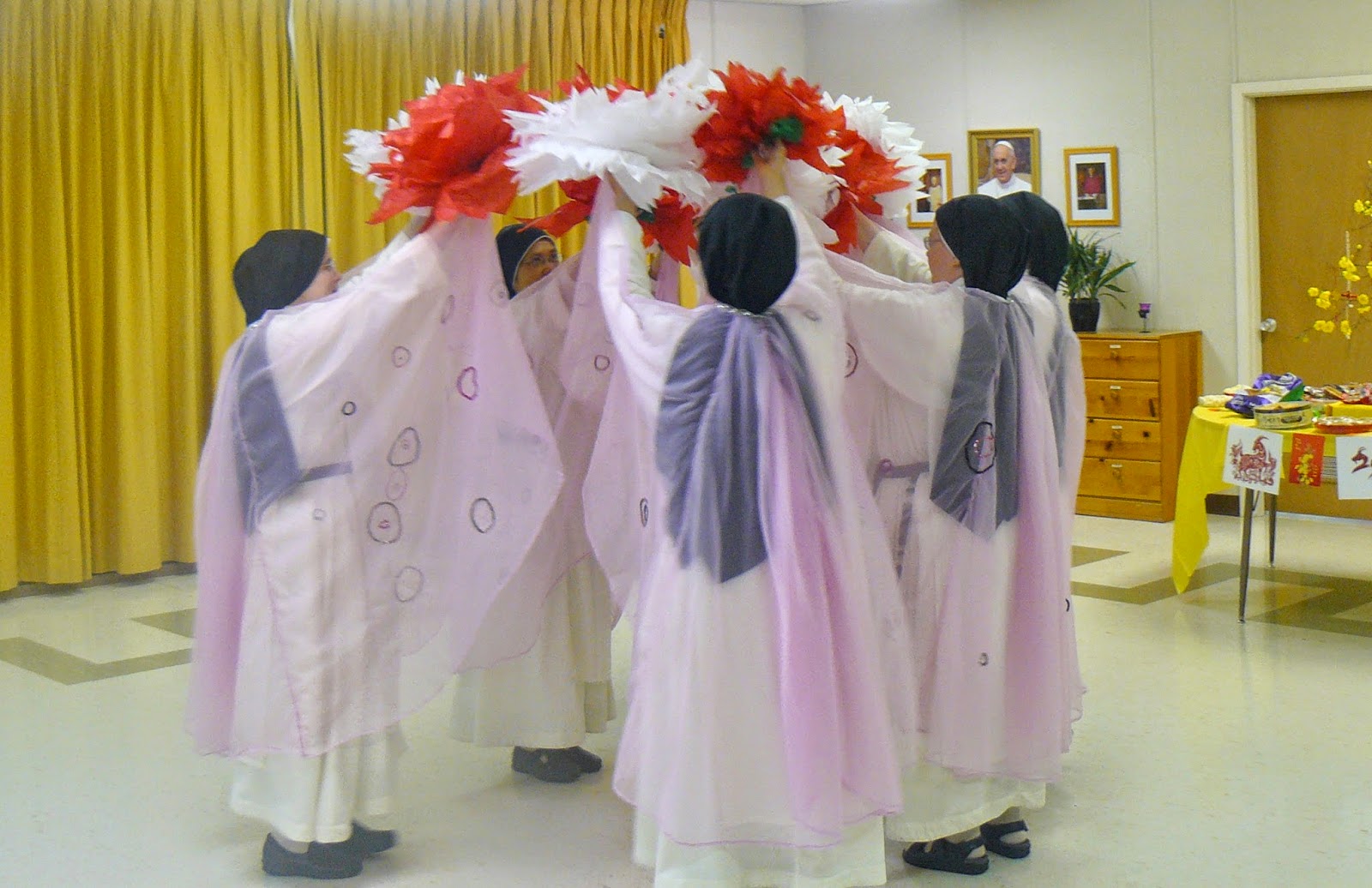 On Sunday night we had our annual celebration of the Lunar New Year, or Tet as our Vietnamese sisters call it! For the Vietnamese people this is the year of the goat (in other countries it\’s the year of the sheep). Our celebration was actually postponed from the 15th due to an event we hope to post later. But this gave us more time to prepare our dance, performed by some of the younger sisters and choreographed as always by Sr. Mary Christine.