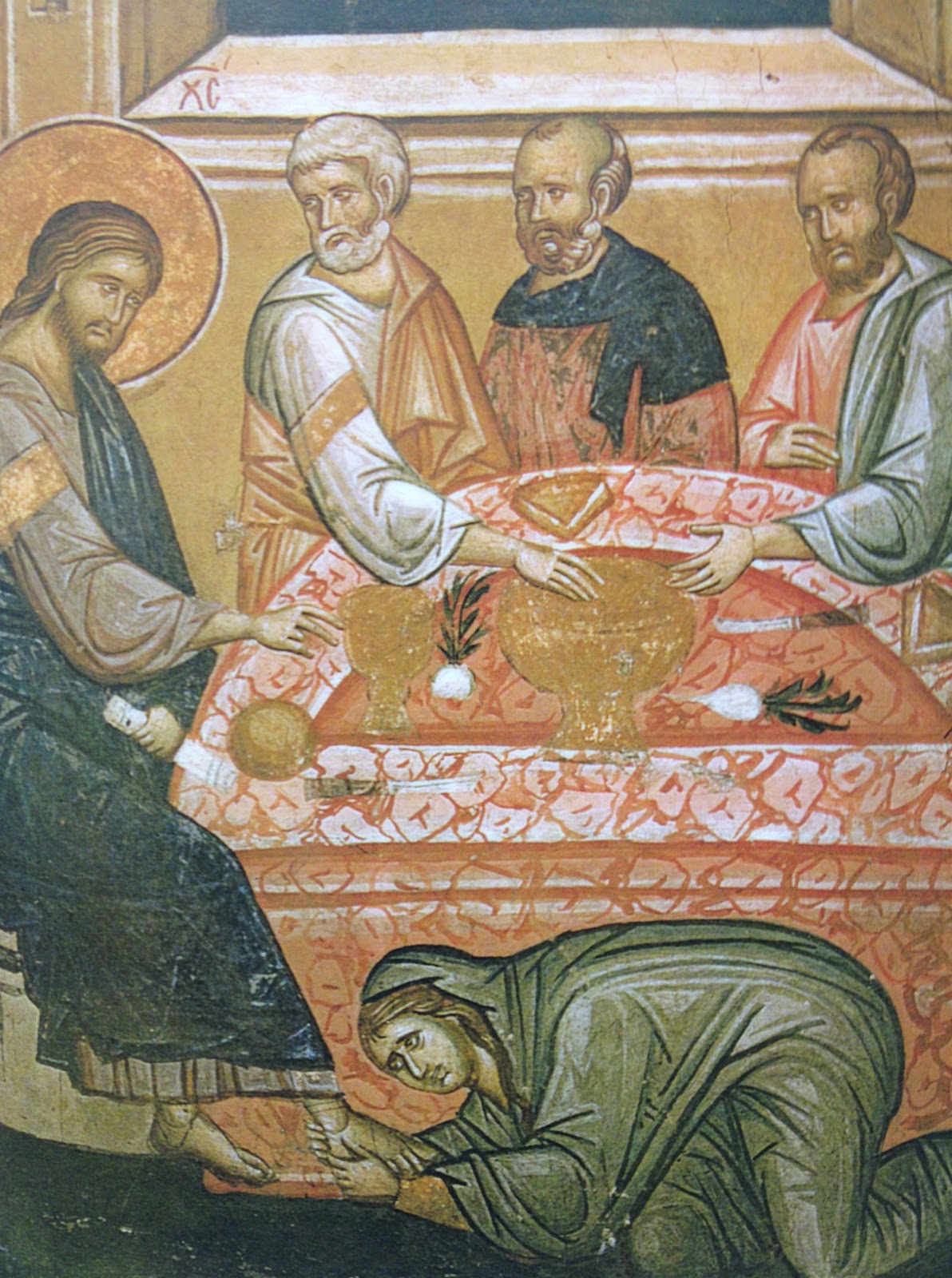 There is a connection between Mary\’s loving gesture and the contemplative religious life. People sometimes wonder, \”Why are you in a cloistered monastery? You all have so many talents and abilities that could be put to such good use in the world!\” But there is no worldly logic to explain the choice we have made. It is simply the desire to offer ourselves completely, like fragrant ointment, to the Lord, to pour out our lives in service to Him. If the Lord calls us to serve Him in a way that gets noticed (for example by writing a book), that is His business. If He calls us to live our daily lives in complete obscurity, that is His prerogative. We have given up everything to follow Him, to be completely at His disposal. And it is for us a great joy, a greater joy than most people realize. So too Mary must have felt joy as she anointed Jesus\’ feet and dried them with her hair. There are many, many people who exude the good odor of Christ through their lives in the world, and thank God for them. But it is also necessary to have a few who just want to \”waste\” their lives on Jesus. \”The house was filled with the fragrance of the oil\”. So too is the Church.