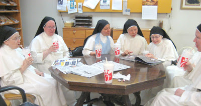 Sr. Mary Gabriel and Sr. Mary Annunciata fixing up their milkshakes with extra whipped cream and a cherry on top!