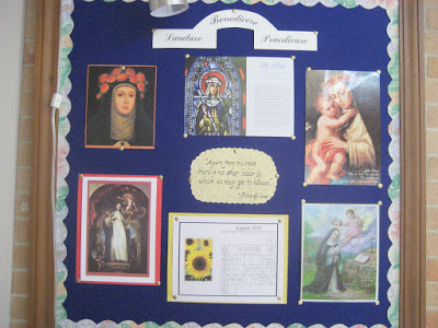 A tribute to St. Rose of Lima on the novitiate bulletin board.