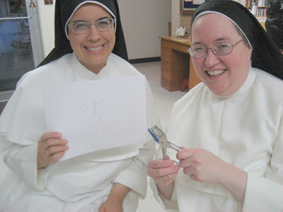 Sr. Mary Gabriel and Sr. Mary Thomas with their drawing and object