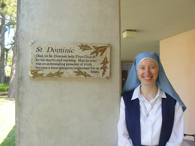 Meanwhile, on the other side of the breezeway, Cloe is standing besides a plaque that has a prayer to St. Dominic written on it. This reminds us of the need to pray always–and to ask for our holy father St. Dominic\’s intercession, which we know to be powerful!
