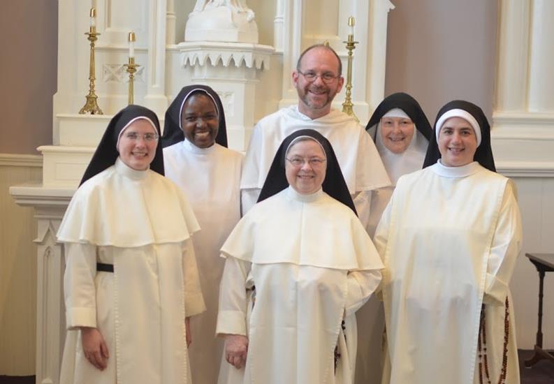 Left to right: Sr. Mary Rose (1st Councilor and Secretary, Lufkin TX); Sr. Marie Tersidis (2nd Councilor, B.C., Canada); Sr. Mary Jeremiah (3rd Councilor, Lufkin TX); Fr. Walter Wagner (Priest-Assistant, Manhattan NY); Sr. Maria Christine (President, Menlo Park CA); Sister Mary Catharine (Vice-President, Summit NJ).