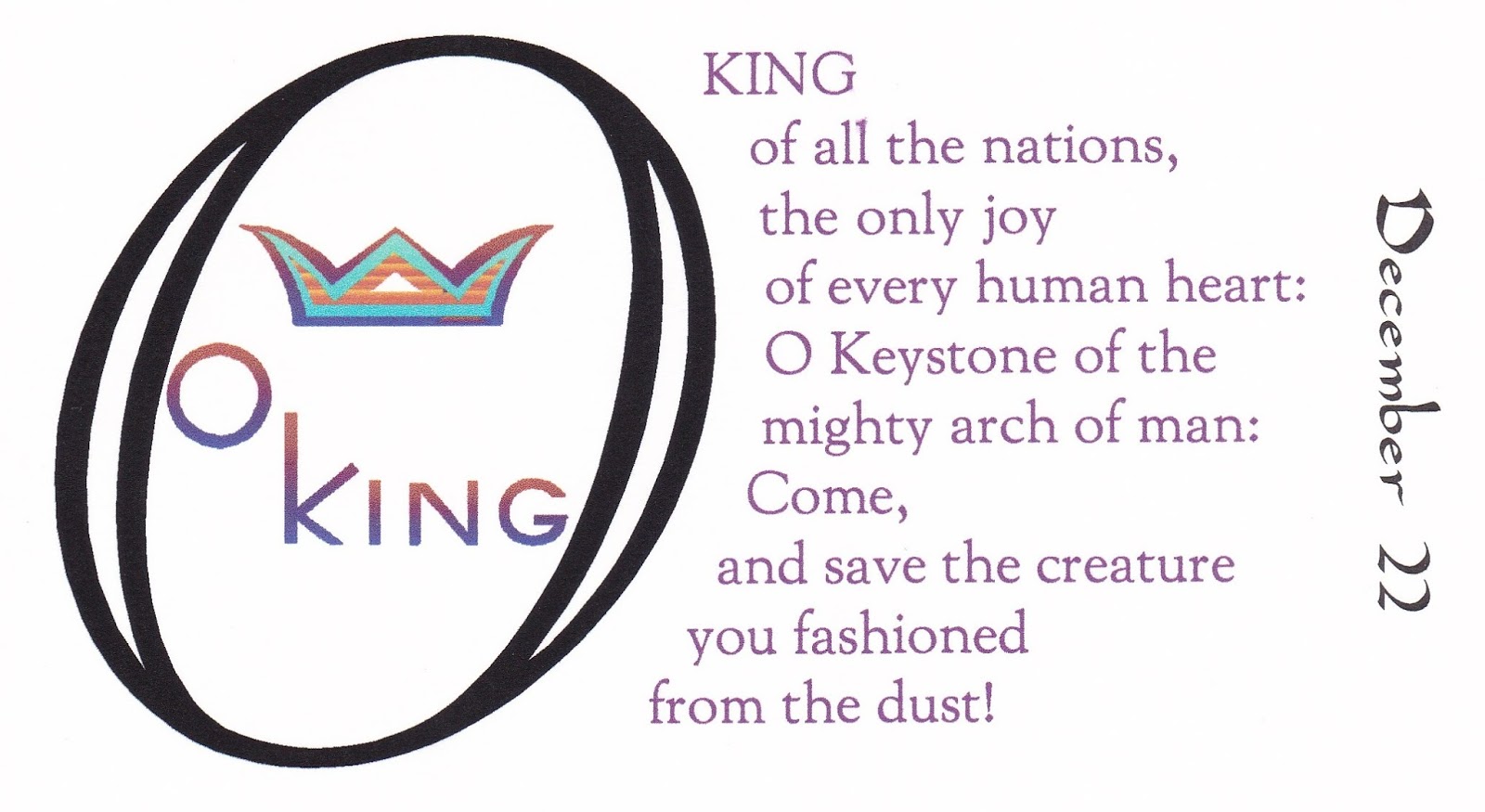 One translation of this antiphon says, Christ is the “cornerstone that binds two into one”. It also says, “Come, and bring wholeness to man.” In other words, Jesus as King of the universe, is the only One Who can truly bring peace among peoples and to each individual heart. We have been fashioned from the dust. So now, today, we ask to be refashioned, reshaped, reformed by Christ, the Word through whom all things were made.