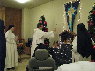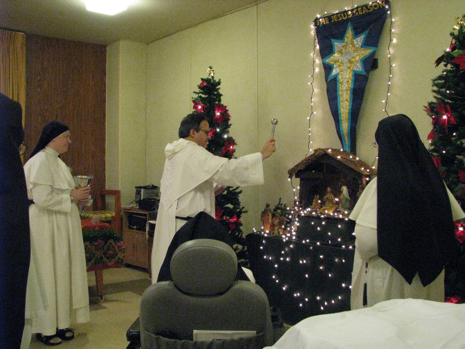 Also, each year on Christmas Eve after Vespers (Evening Prayer), our chaplain comes in and blesses the Nativity Scenes in the Community Room and Refectory (dining room).