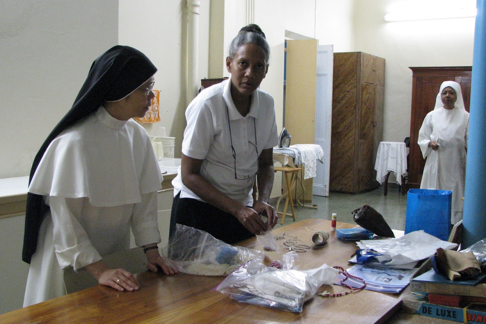 Sister Mary Christine and Sister Mary Jeremiah both taught the sisters in formation how to make cord rosaries without the use of a tool. The postulant, Jasette, was particularly eager to perfect this skill and she practiced every evening at recreation.