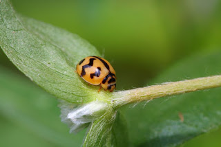 The Asian Ladybug (pictured above) is orange or other colors instead of the traditional red. Thousands of them were imported into our country in the 20th century, especially in the 1970s and 1980s. They are very beneficial bugs, as gardeners know so well. They loved to eat aphids which are a plague to roses.