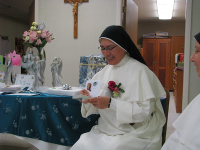 We had our Mass at 9:30 instead of 7:20 and Sister had a good number of guests. After the Mass she greeted them in the parlor and then we provided a light lunch for them.