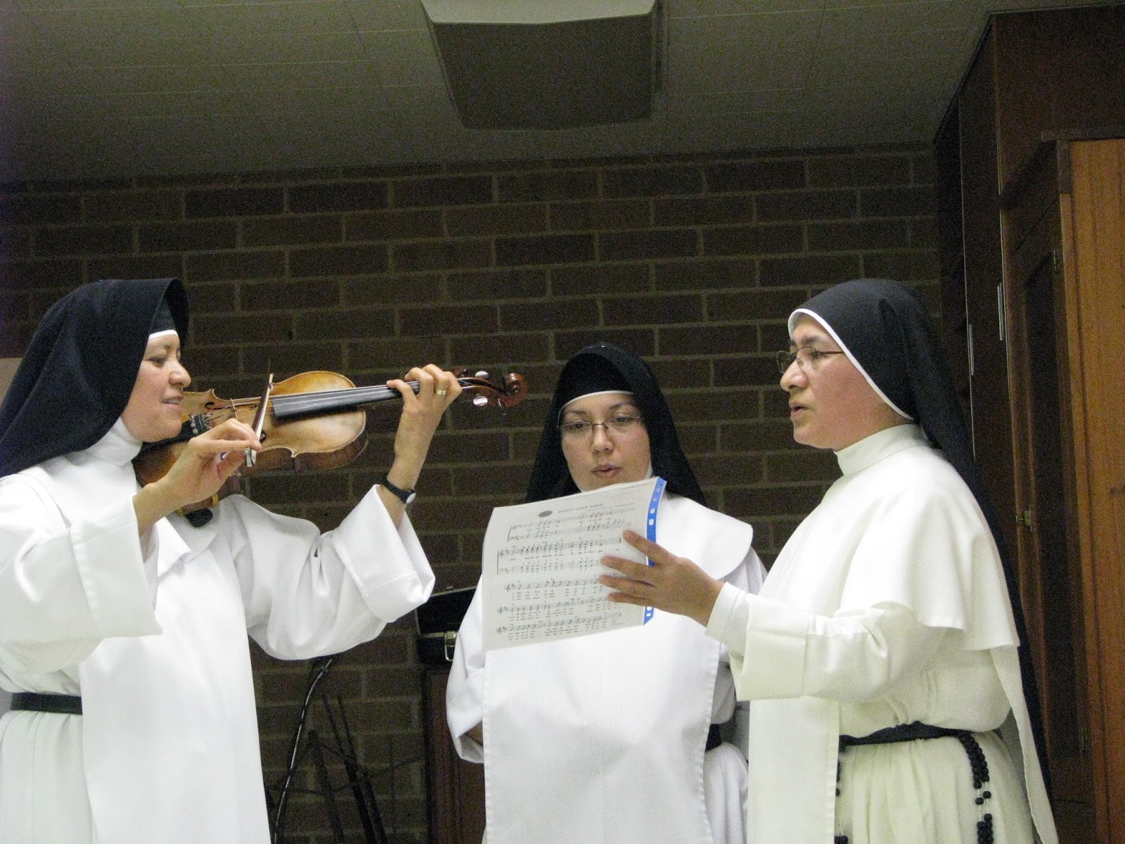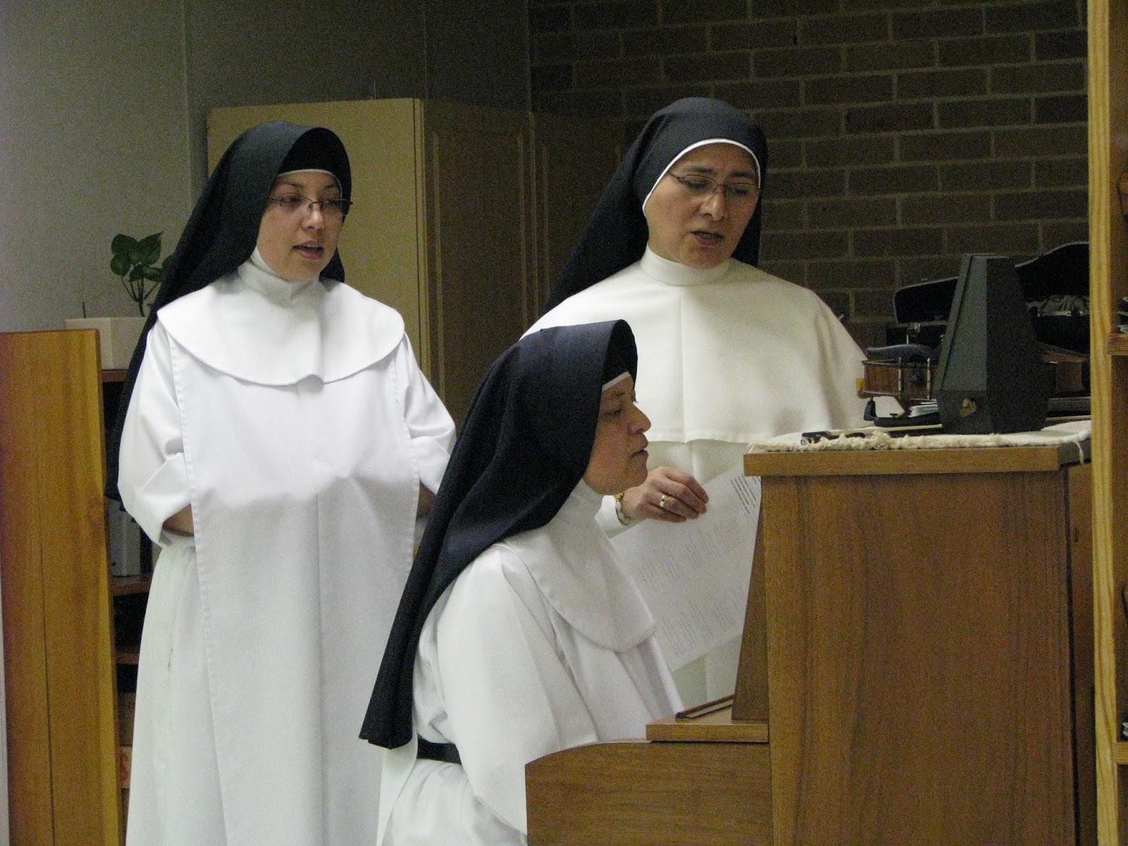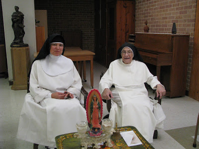 As the Sisters from the Association Council were leaving us, we welcomed another Nun from a Dominican Monastery in Guadalajara, Mexico. Sister Leticia, OP, was in Albuquerque, New Mexico, visiting her mother who recently had surgery. She wanted to stop by for a visit since we are the closest Dominican monastery to them. She brought with her a lovely statue of Our Lady of Guadalupe with vigil lights. You can see it on the TV tray in front of Sister Leticia and our prioress, Sister Maria Guadalupe.