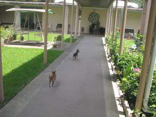 Sister Mary Dominic took to the dogs right away. They looked like chihuahuas. Sister and her mother had had a chiweenie named “Peanuts”. Sister set them up in one of our courtyards with a little house and some water until we were able to give them to the proper authorities about 3:00.