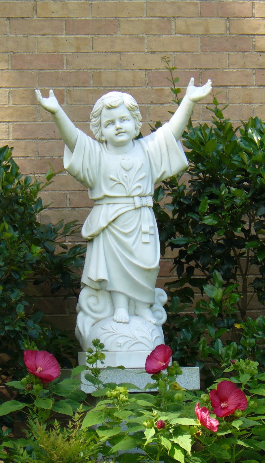 Above is a photo of our “Baby Jesus” Shrine. We call him that because the statue arrived on Christmas Eve. If you haven\’t had a chance to visit Him, He\’s on the far right side of our building.