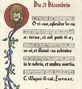 It is especially fitting that we pray this antiphon today, on the Winter Solstice. Today is the shortest day of the year in the Northern Hemisphere. This title of Christ, Oriens, means daybreak, dawn, sunrise, the East, the beginning. The O antiphon for Dec. 21th begins by addressing our Savior as O Oriens, O Dayspring or Dawn rising from the East.