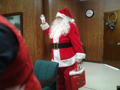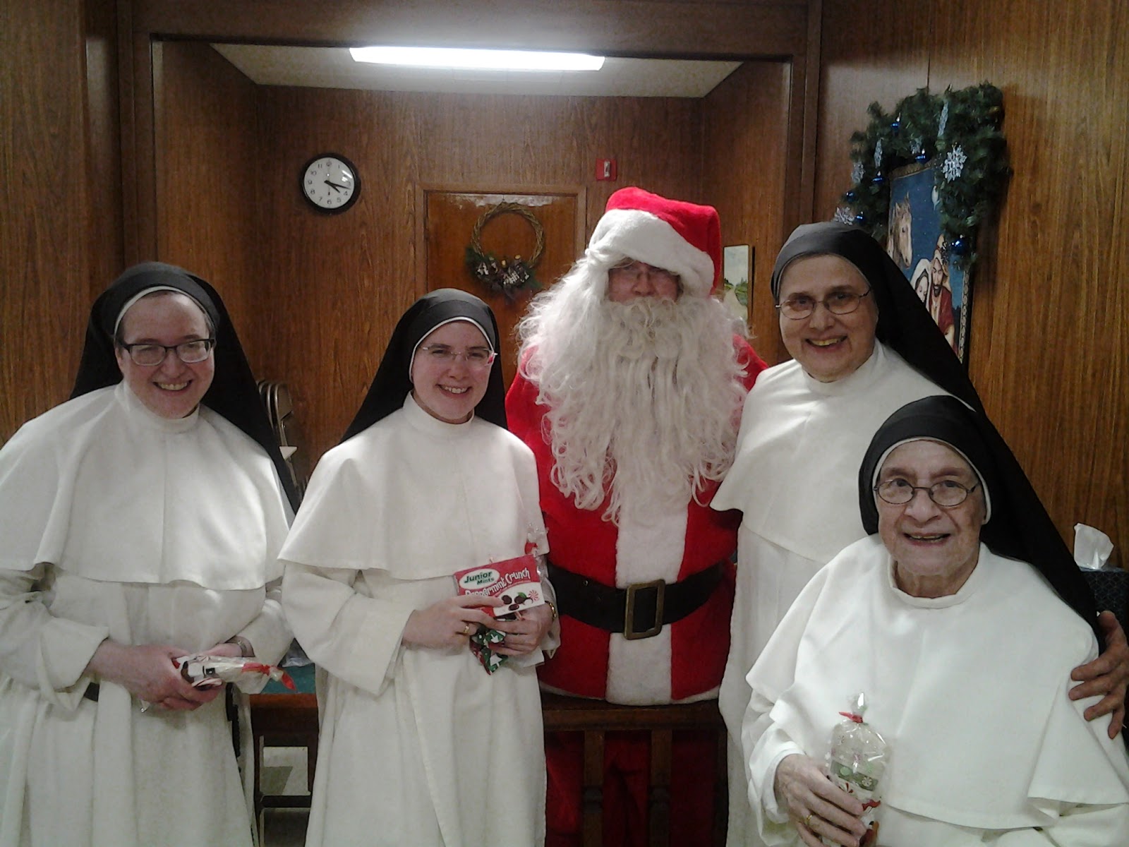 We were able to snatch of photo to show that he really did come. Above, Santa is pictured, from left to right, with: Sr. Mary Thomas, Sr. Mary Rose, Sr. Mary Margaret, and Sr. Maria Guadalupe.