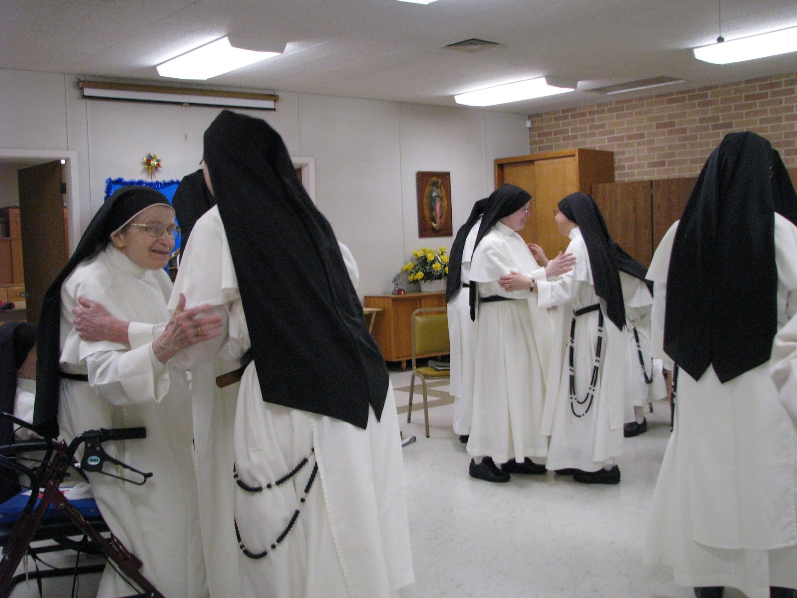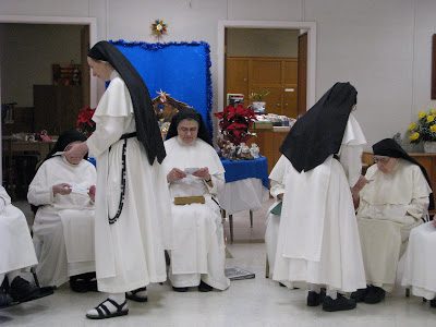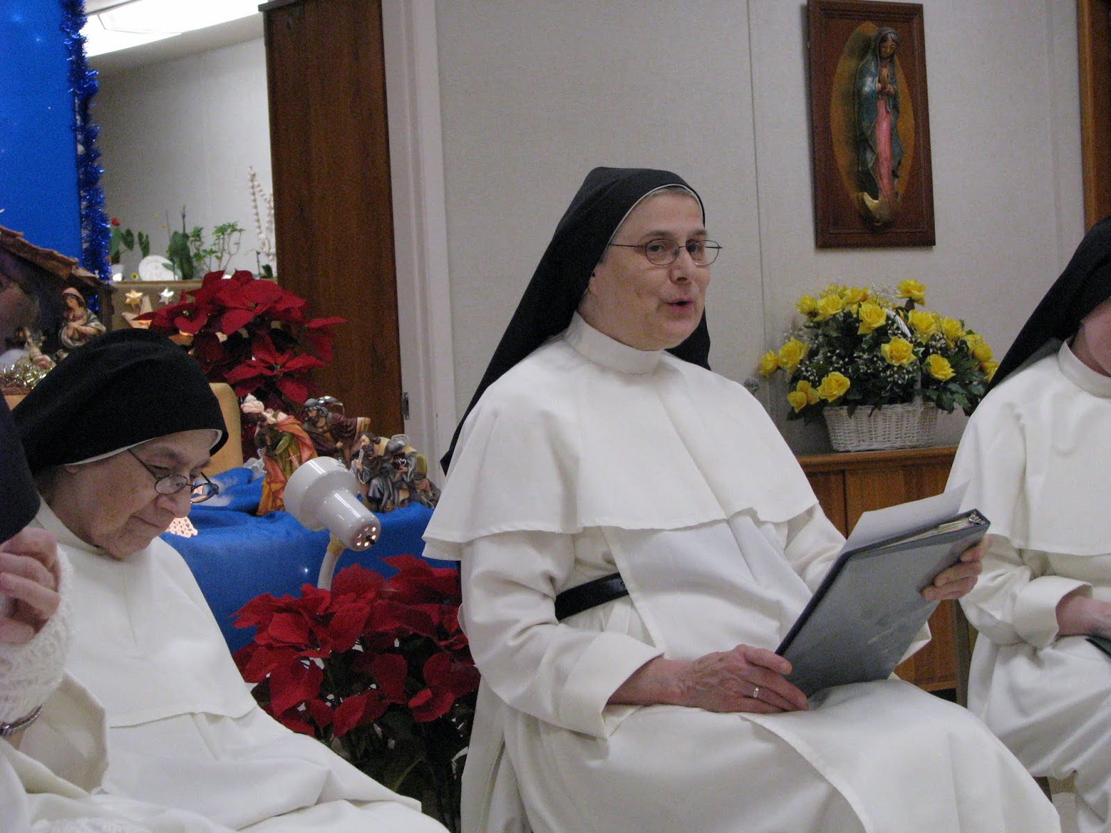 Every year on January 1, we gather about 10:30 am to draw our special patrons and intentions for the year. The ceremony begins with a Sister standing in the middle of the gathering and singing an ancient chant for the Nativity of Christ. Then, after everyone sits, the Prioress gives a talk. This year Sister Mary Margaret gave a very meaningful reflection of the meaning of the name, “Emmanuel”.