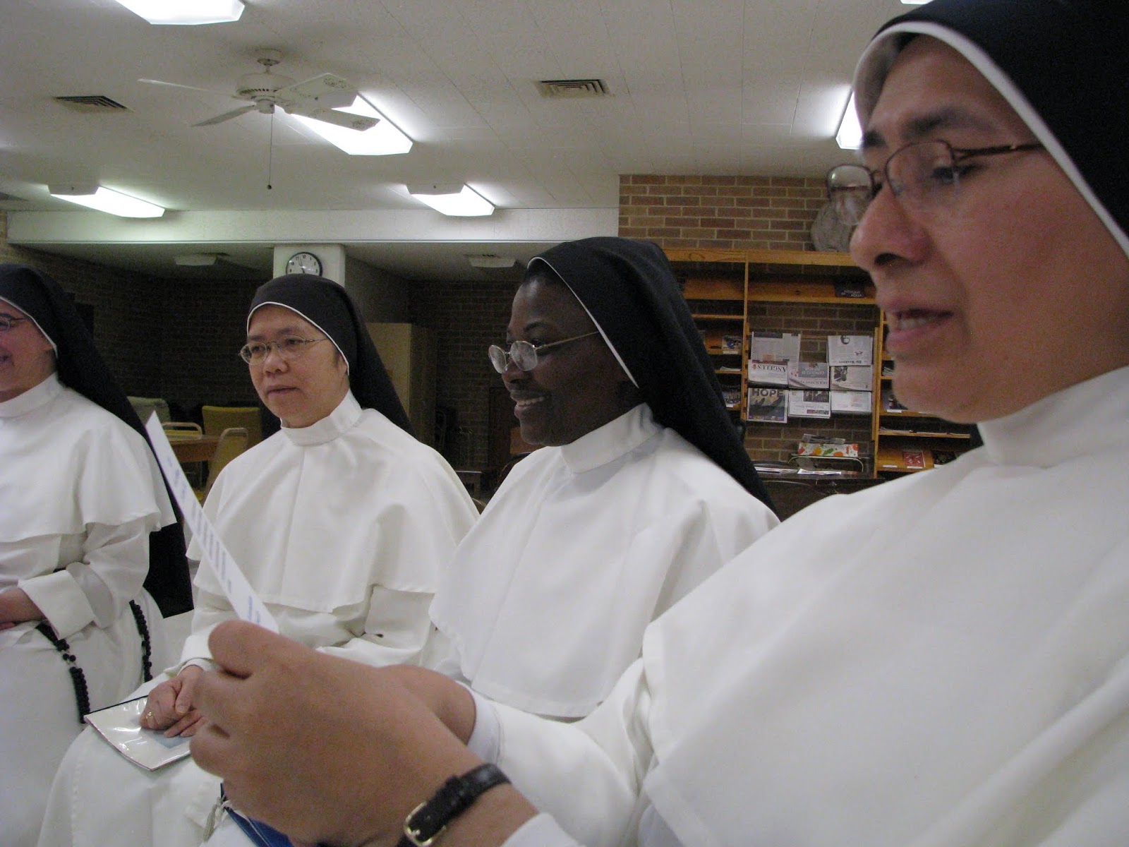 Afterwards, the two “youngest” Sisters distribute special prayer cards made for the occasion. Each Monastery seems to have this tradition, but it is done in slightly different ways. For example, one monastery may have one Patron for the entire community, while here in Lufkin, each Sister has a Patron and intention.