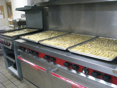 Occasionally a local grocery supplier donates lots and lots of cases of bananas to us. They come at the peak of ripeness–not too green and not too mushy–and for some time the main hall in our building is filled with the aroma of the delicious fruit, making us hungry as we go along. It even permeates into the chapel! We eat some as they are, and we give some away. We also make the obvious things: banana bread and banana pudding. But the majority of our bananas are dried.