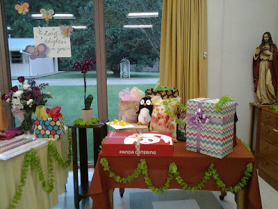 | Part of the feast day table (gifts, etc.) Notice the picture of St. Margaret of Hungary in the middle! |