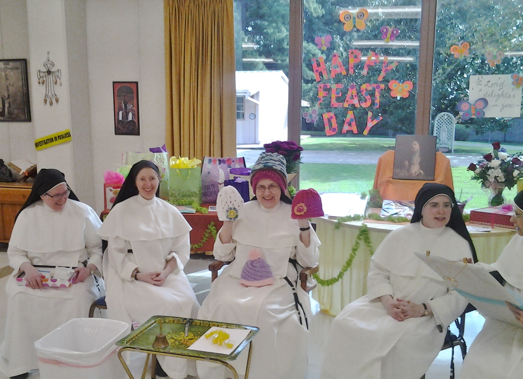 We began with the feast day song, a musical retelling of Sr. Mary Margaret’s many adventures and accomplishments over the past year. It was written by one of the sisters and set to a familiar tune.