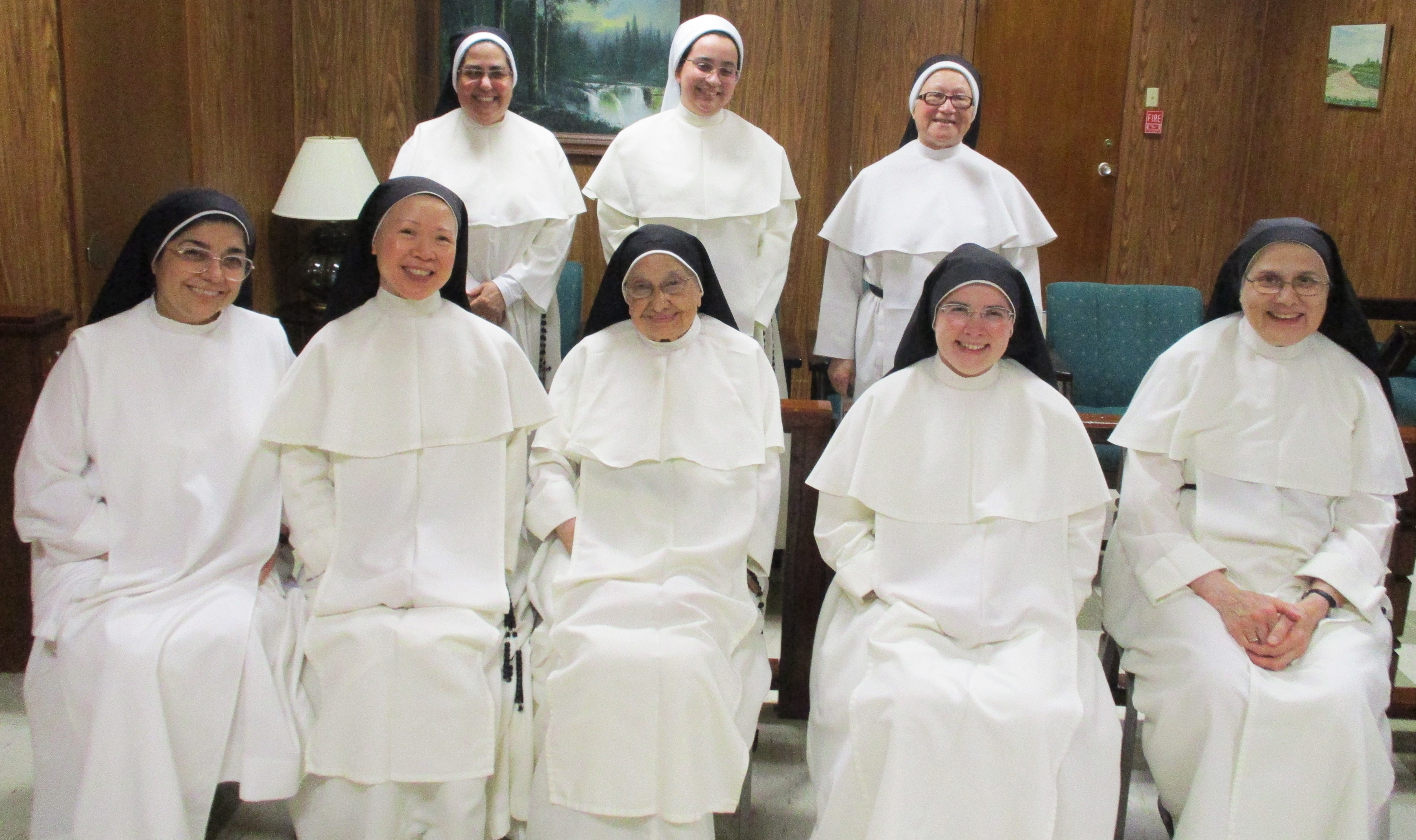 Their motherhouse is in Puerto Rico, and these sisters are assigned to Sacred Heart parish in Palestine, TX. They brought us some delicious food for dinner–home-cooked! We really appreciated this great meal, and the lovely visit we had with them after dinner. The Sisters celebrate May 13–Our Lady of Fatima–as their patronal feast day, and we were honored that they came to spend the day at the Monastery, where they could have some time for prayer, quiet, and the opportunity for confession as well as our visit. Their house is not too far from our monastery, so we see them fairly regularly. It’s always a pleasure! Please pray for Sr. Laura, their novice (in the white veil) who will make her first vows this summer in Puerto Rico.