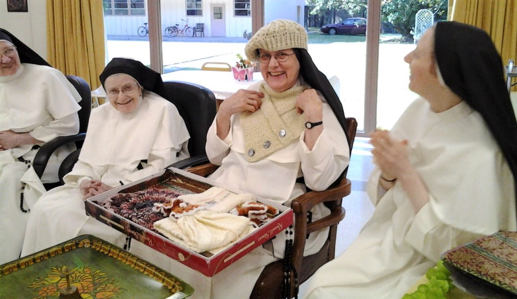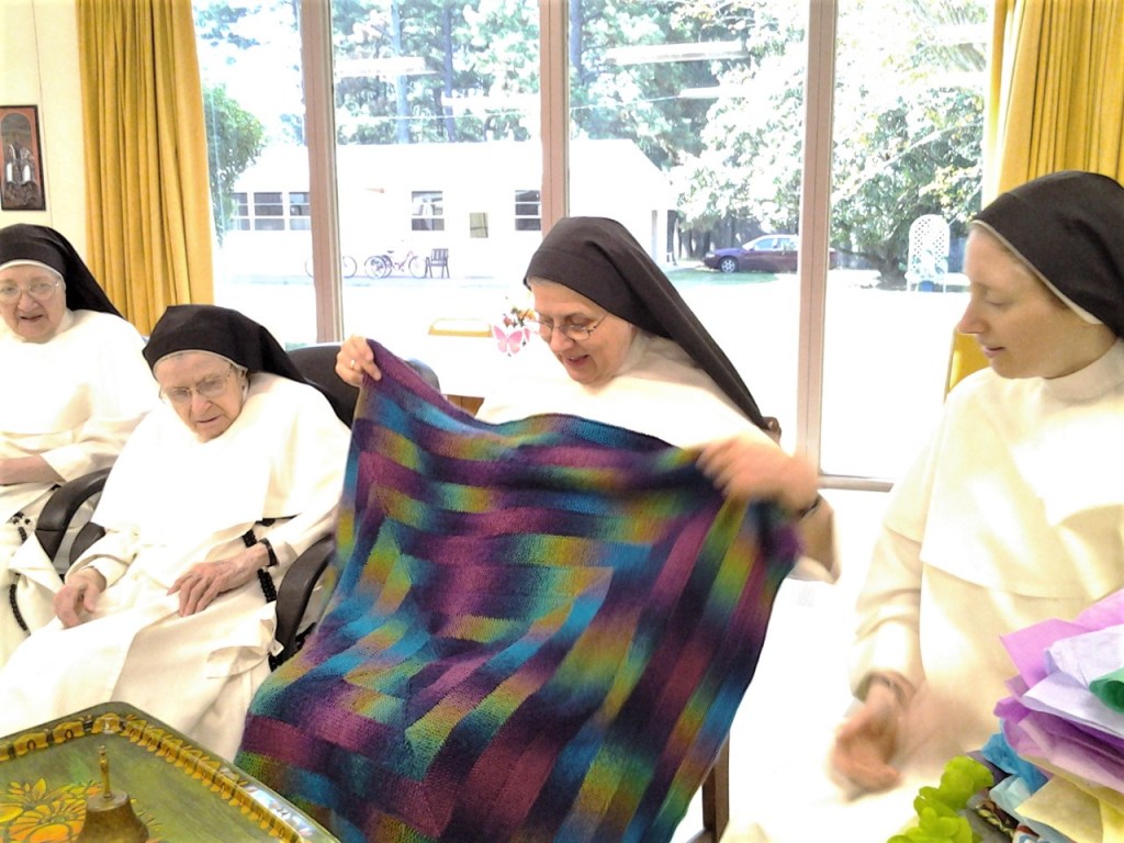 We would like to share some pictures from the gift opening in the morning. All the gifts you will see here were made by the sisters. Sr. Mary Margaret uses these lovely handmade items as gifts for benefactors and prizes in our popular summer raffle.