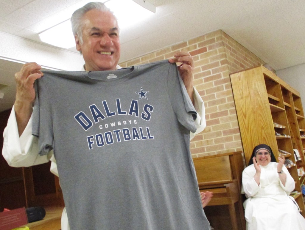 Fr. Fernando shared with us that he loves the Dallas Cowboys football team, so as a special gift and a remembrance of us we bought him a team t-shirt.