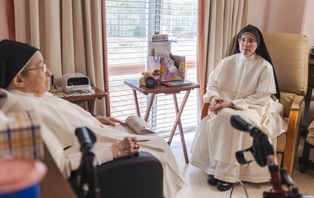 Sr. Mary Therese and Sr. Mary Rose pose in the infirmary…even though neither of them has ever worked in this department.