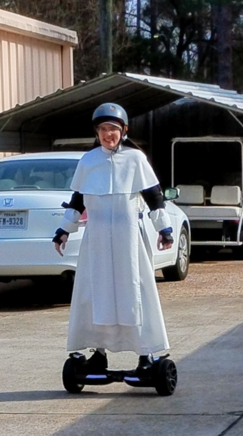 Sr. Mary Rose, our courageous prioress, was the first to ride it. She made sure to wear pads and a helmet!